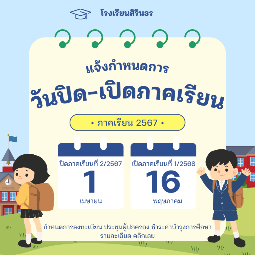 ปฏิทินแผนงาน โรงเรียนสิรินธร