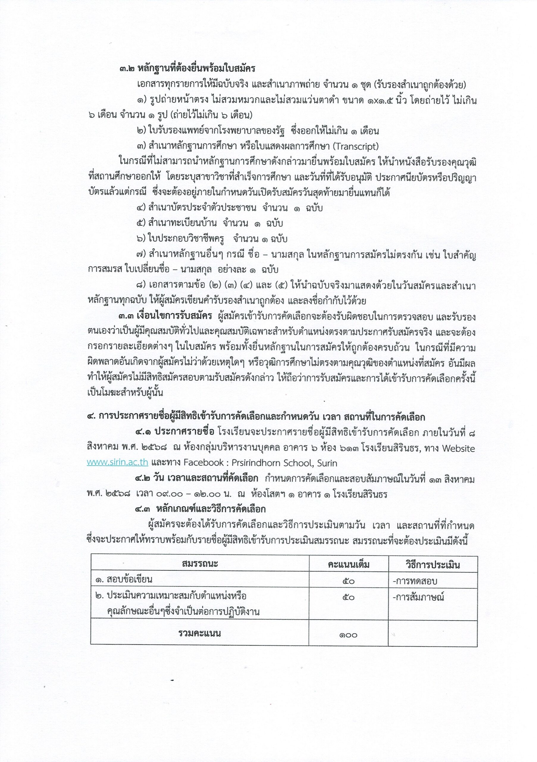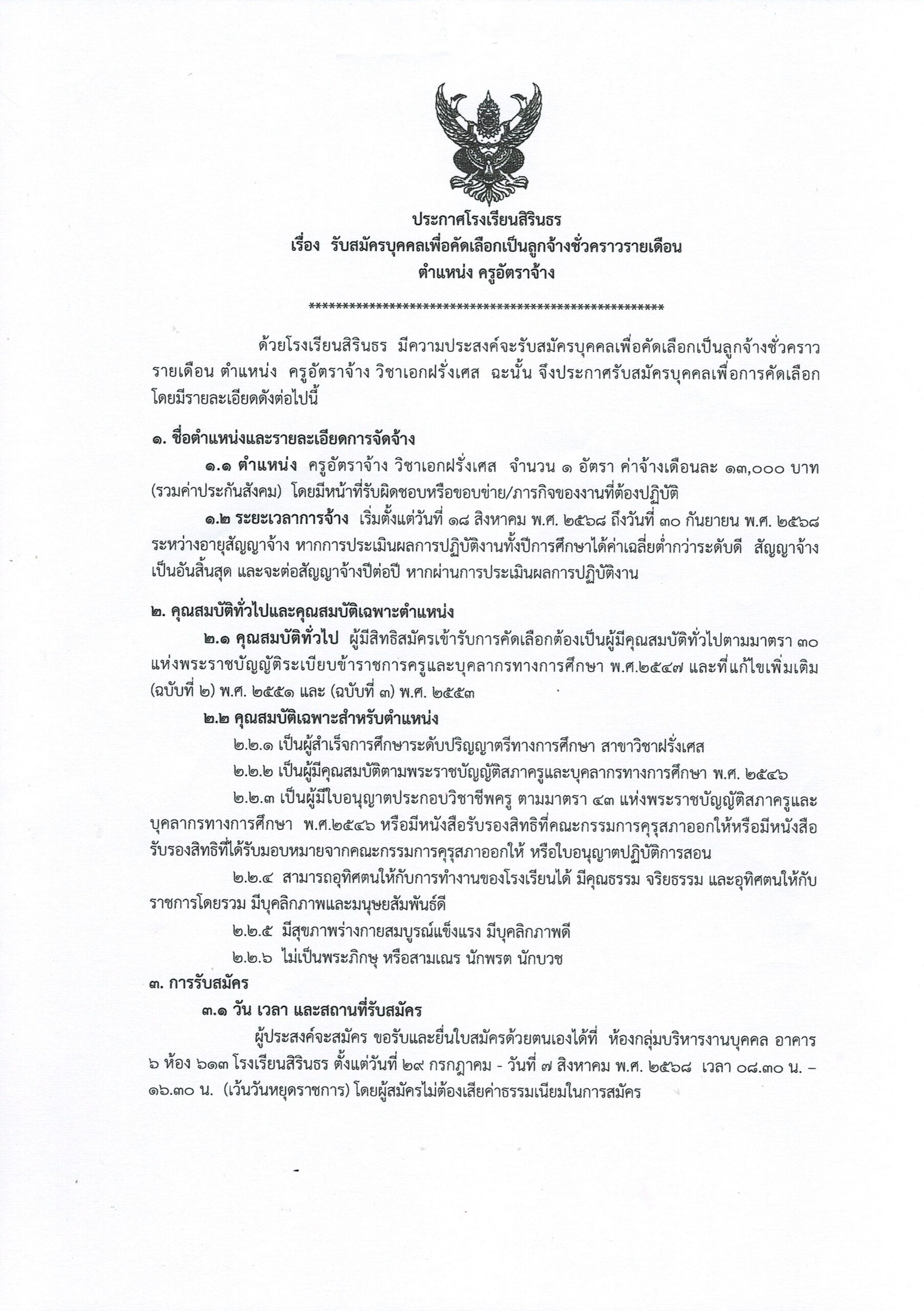 ประกาศโรงเรียนสิรินธร เรื่อง ประกาศรายชื่อผู้มีสิทธิสอบคัดเลือกเป็นลูกจ้างชั่วคราวรายเดือน ตำแหน่งครูอัตราจ้าง (เอกคหกรรมศาสตร์)