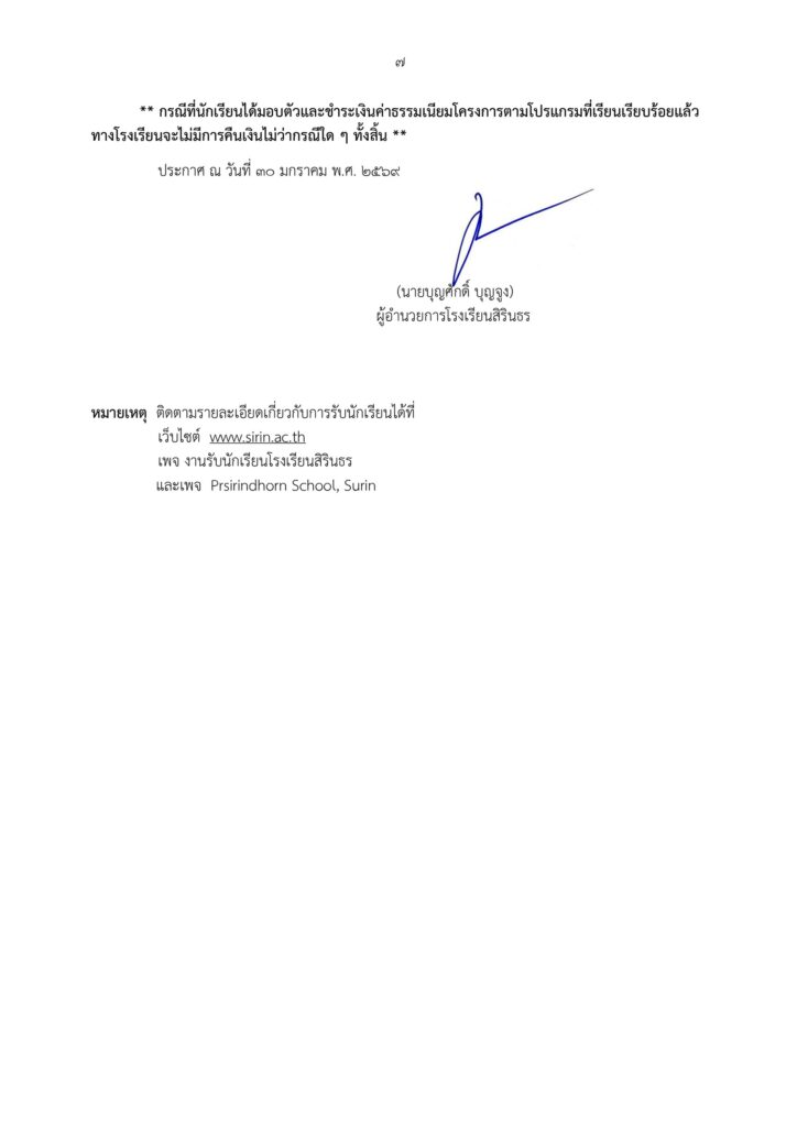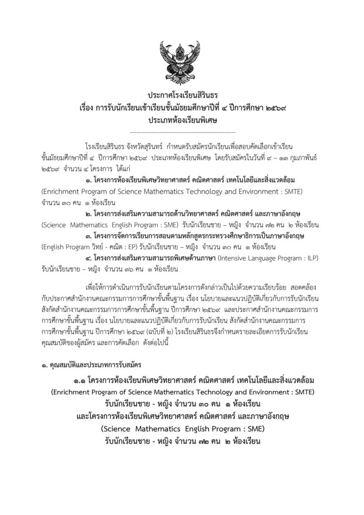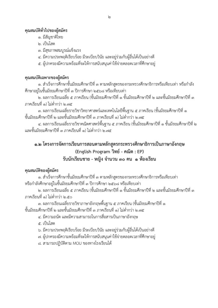 2. ประกาศรับนักเรียน ส.ธ.69 ม.4 ห้องพิเศษดาวน์โหลด