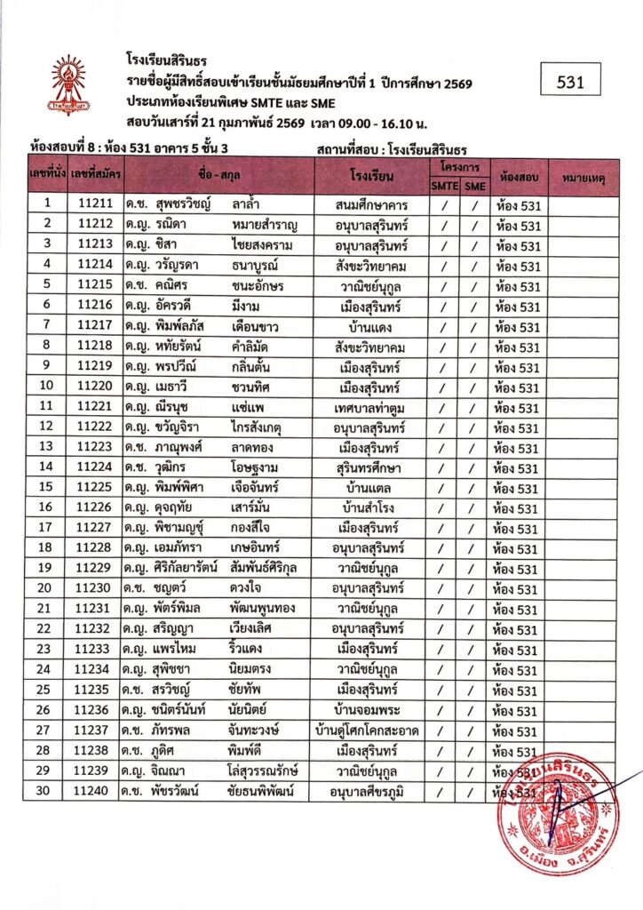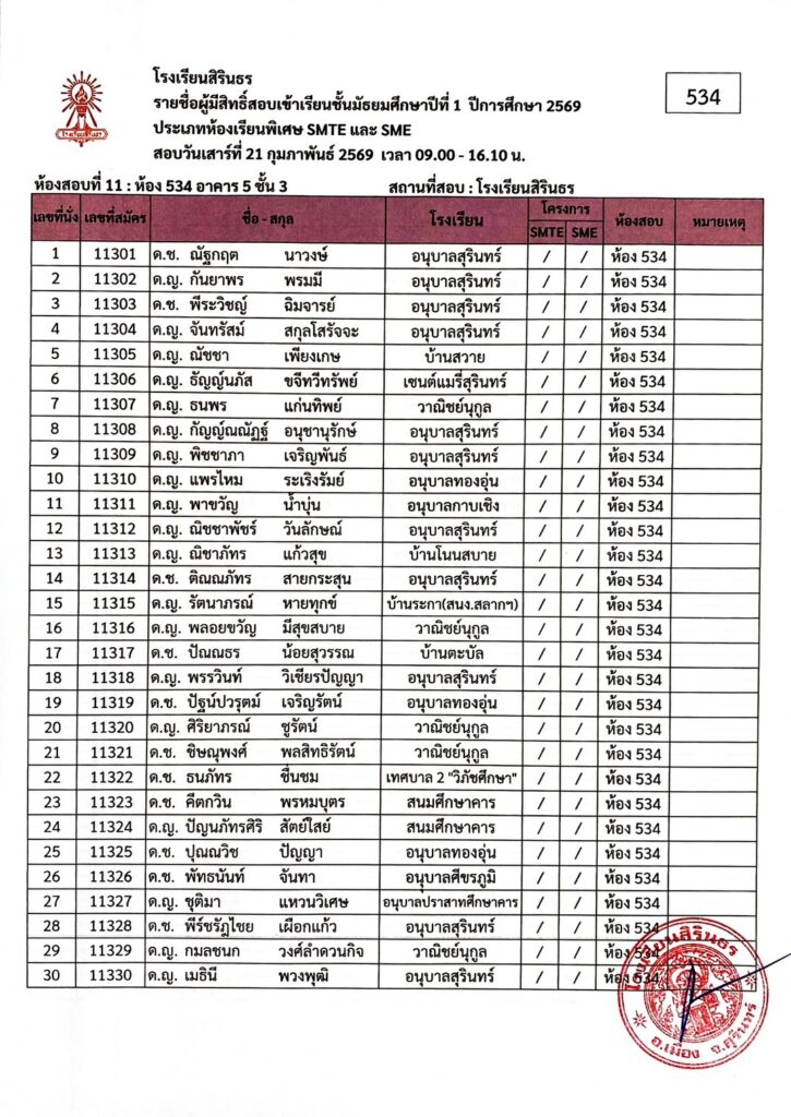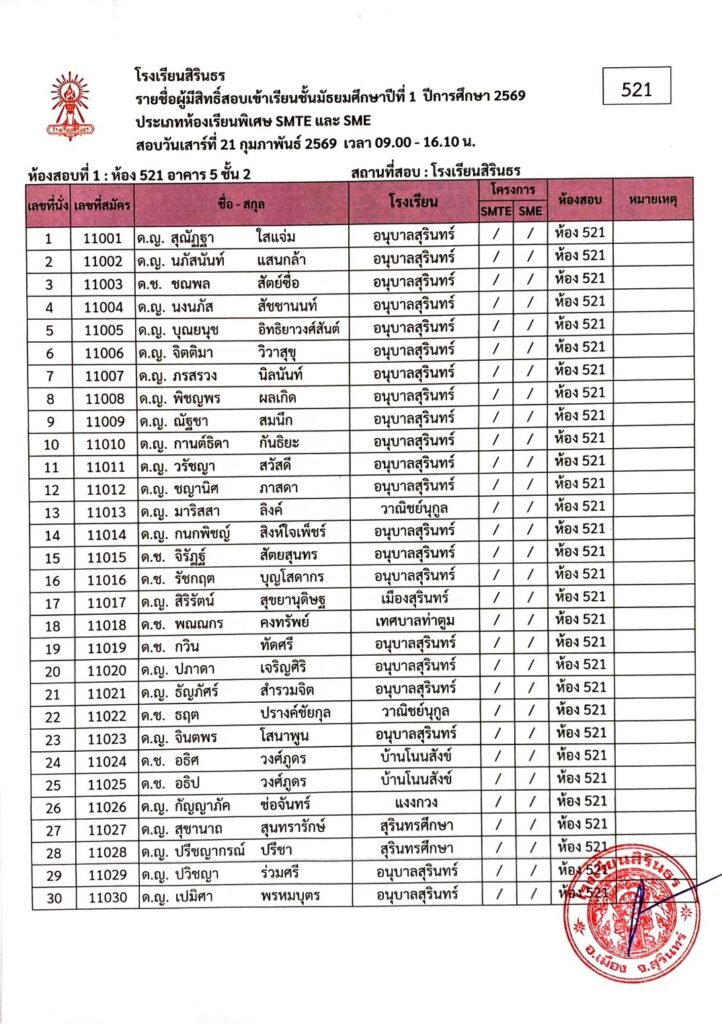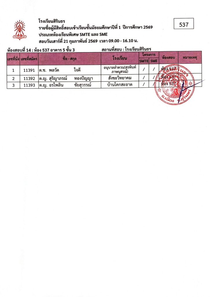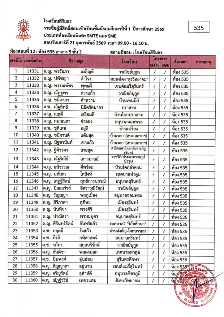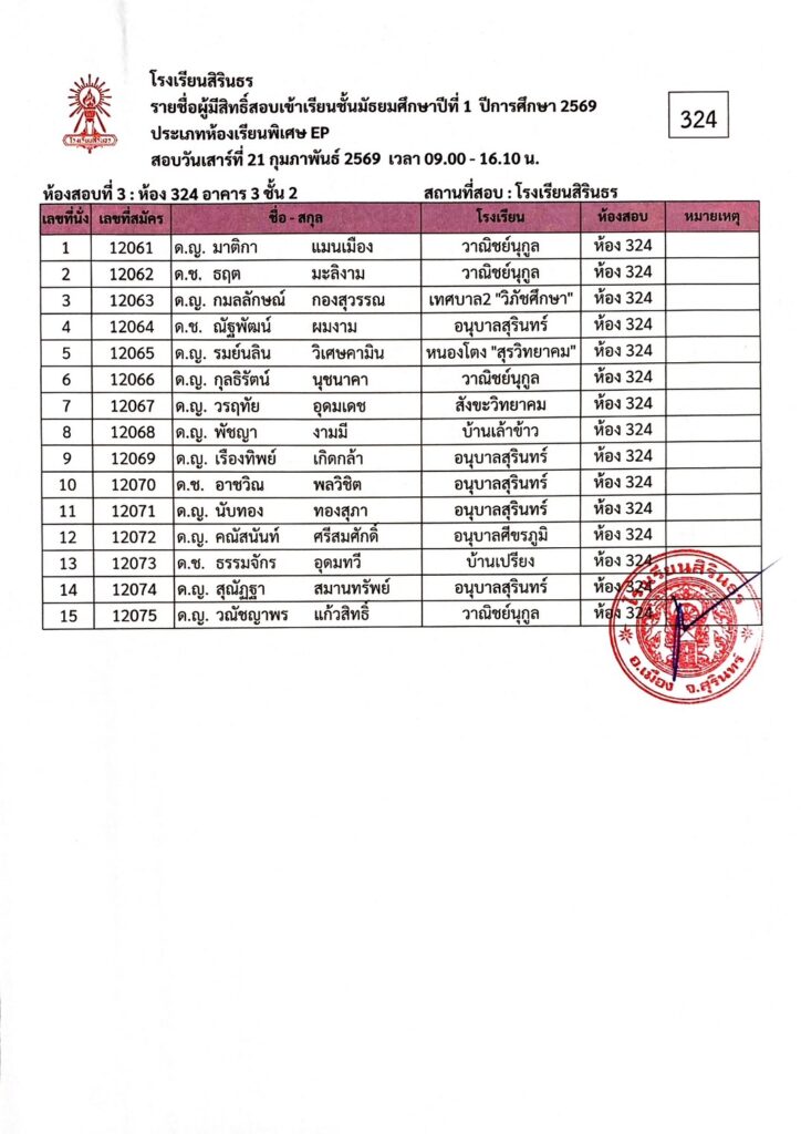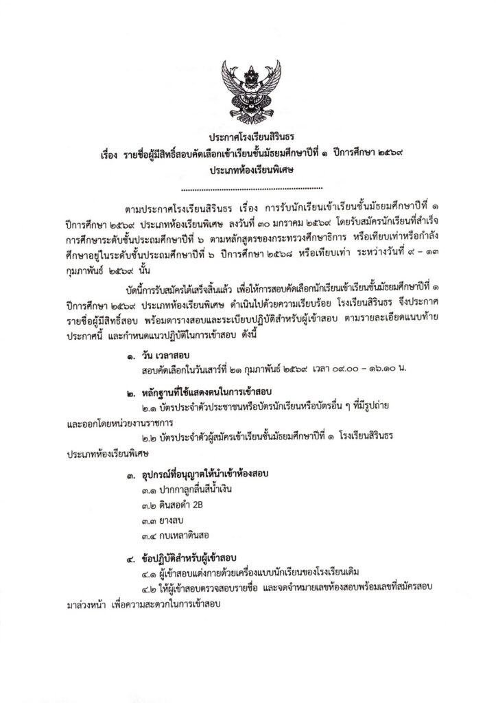 เรื่อง ประกาศรายชื่อผู้มีสิทธิ์สอบเข้าเรียนชั้นมัธยมศึกษาปีที่ 1 ปีการศึกษา 2569