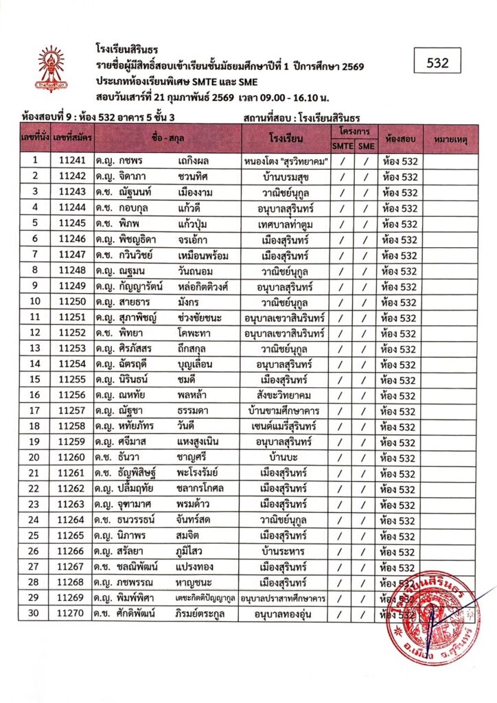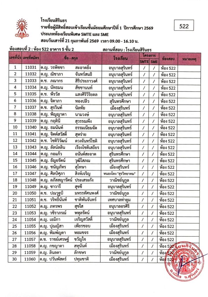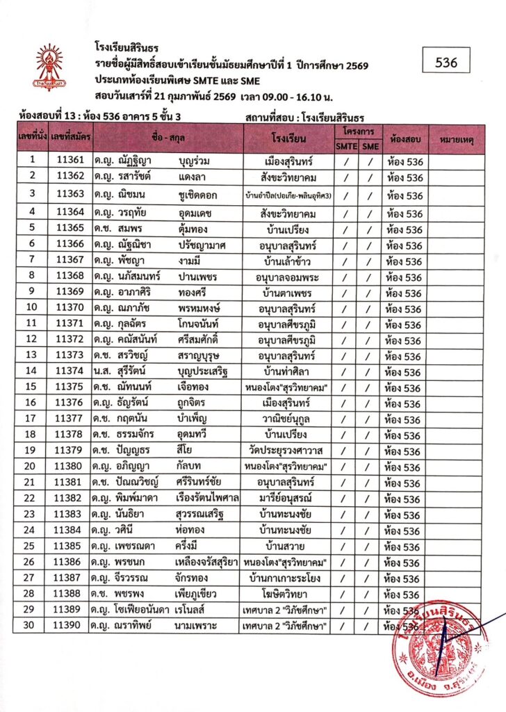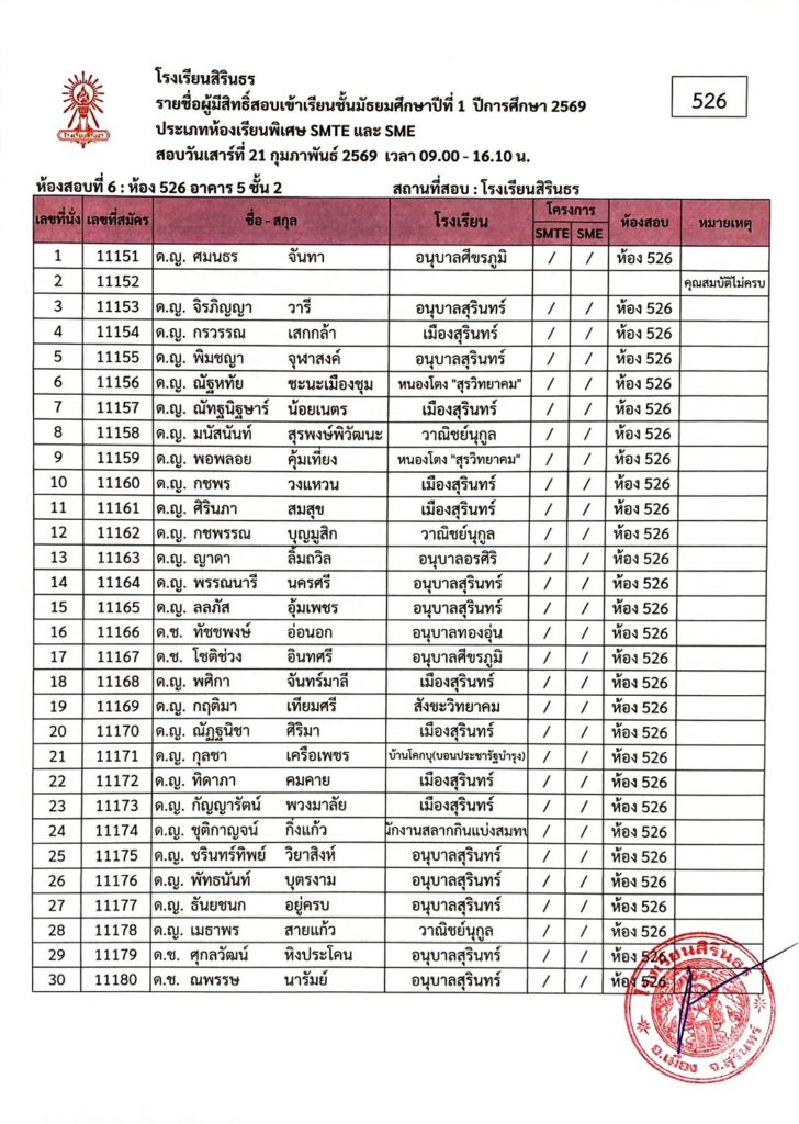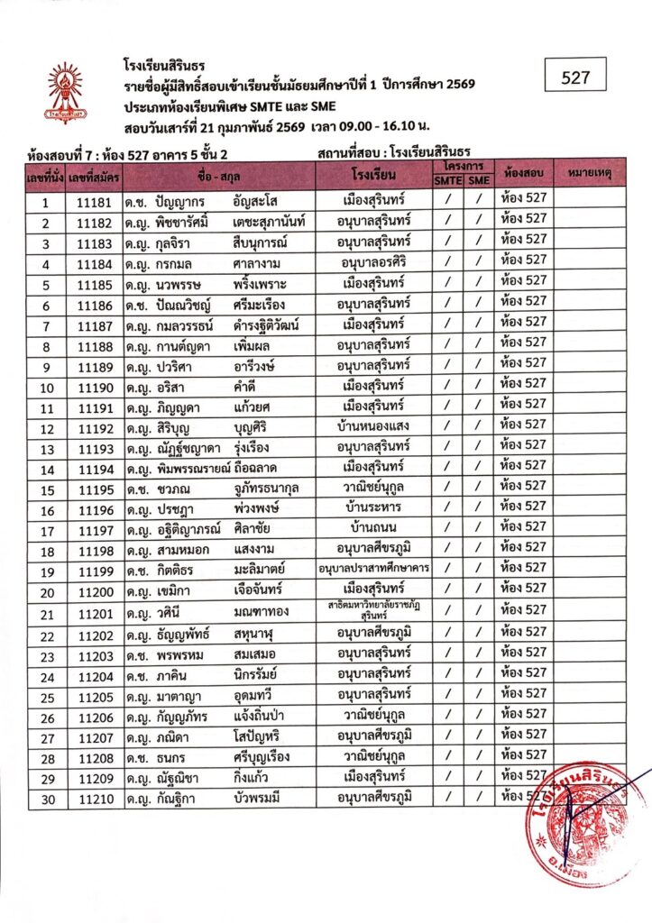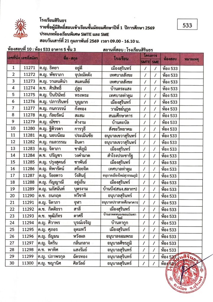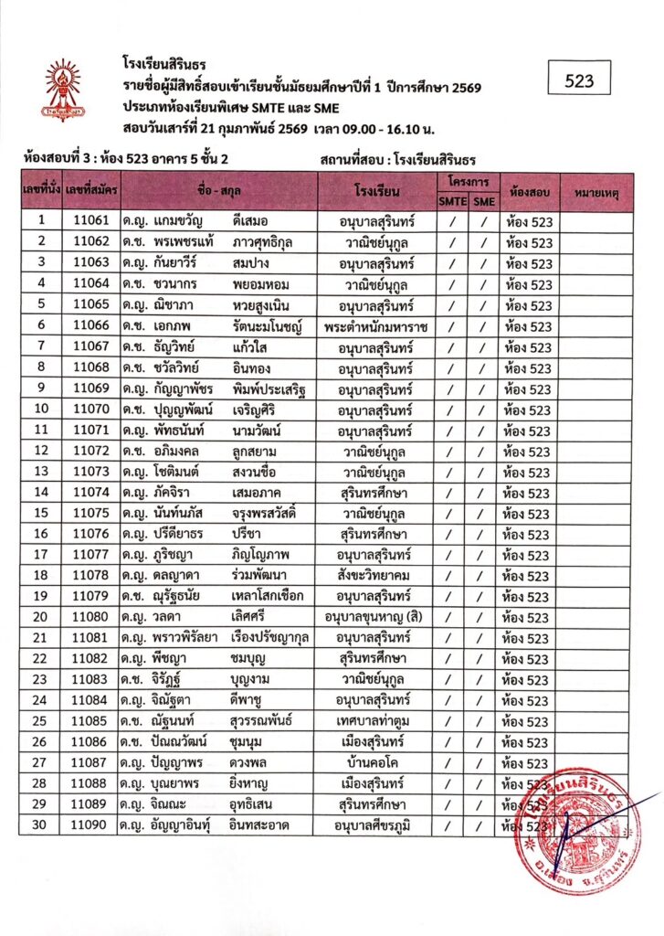 เรื่อง ประกาศรายชื่อผู้มีสิทธิ์สอบเข้าเรียนชั้นมัธยมศึกษาปีที่ 1 ปีการศึกษา 2569