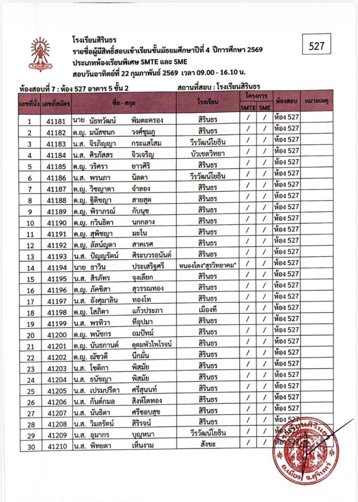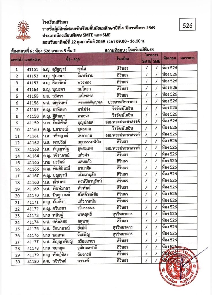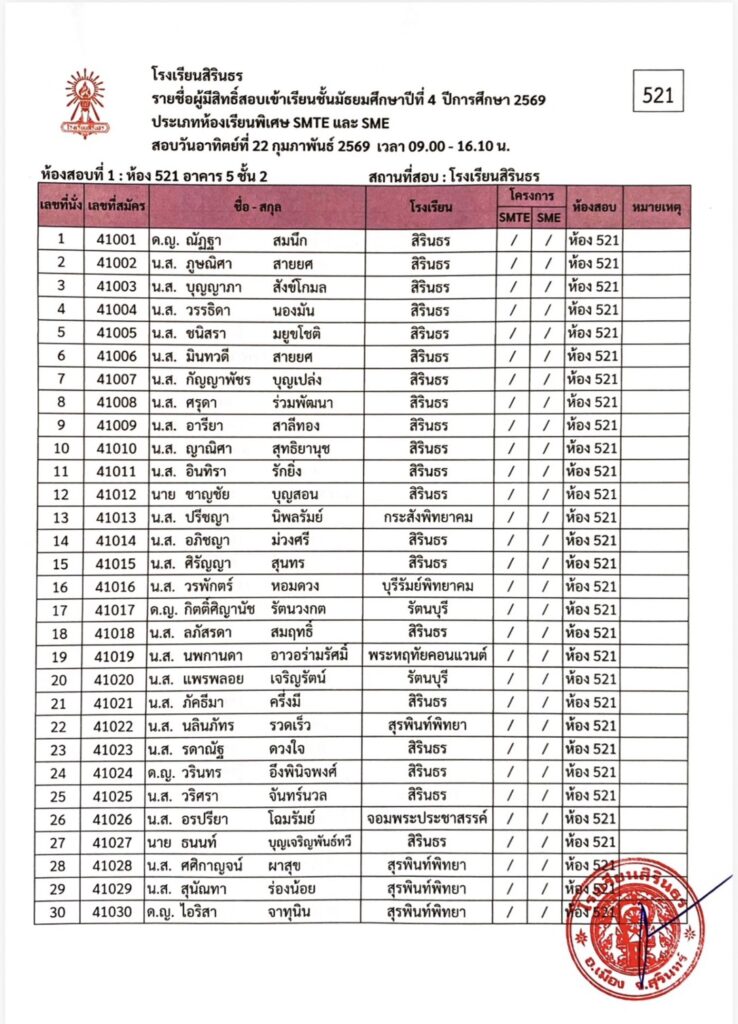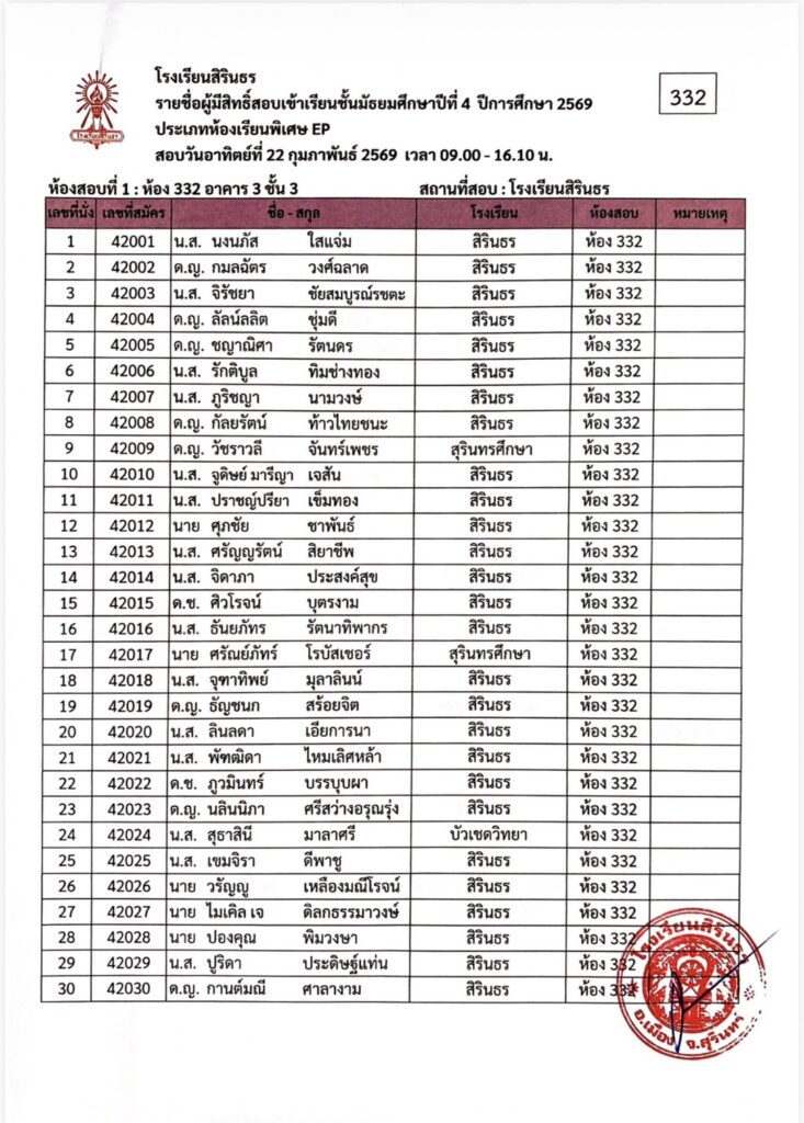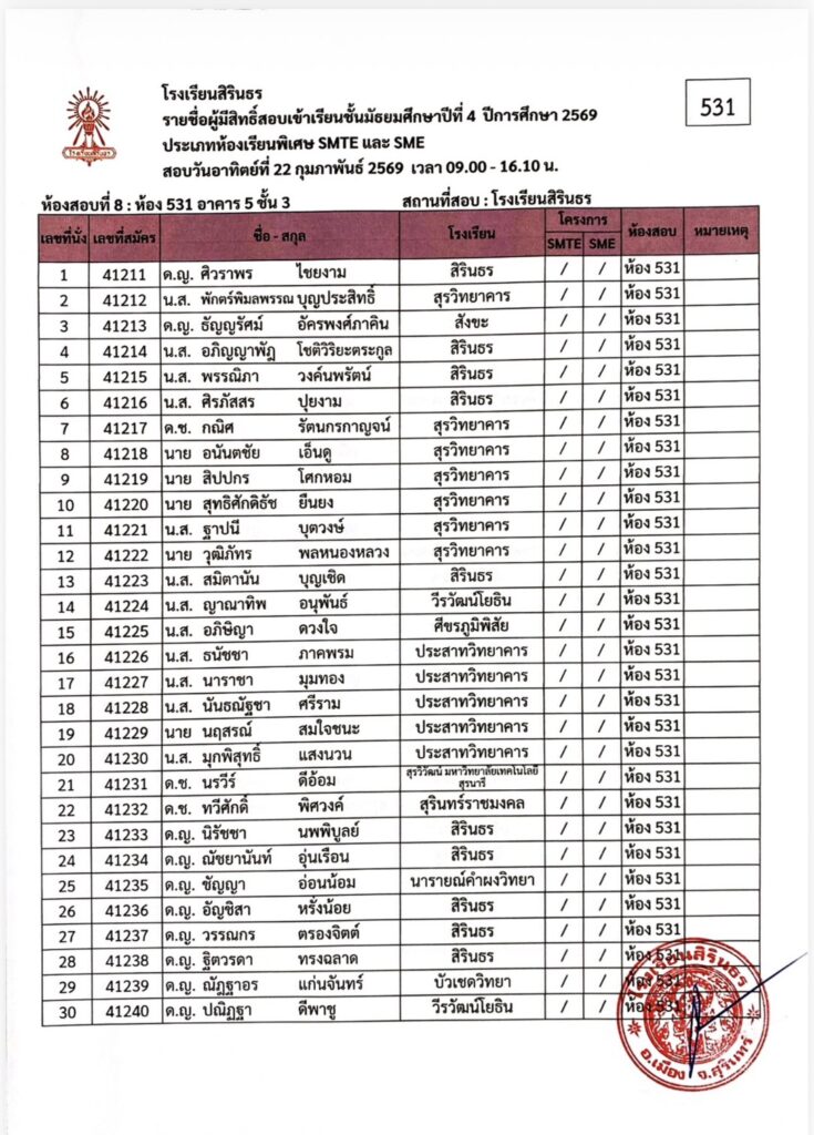 เรื่อง ประกาศรายชื่อผู้มีสิทธิ์สอบคัดเลือกเข้าเรียนชั้นมัธยมศึกษาปีที่ 4 ปีการศึกษา 2569