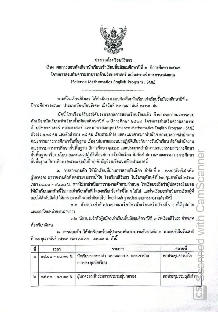 มาแล้ว ประกาศผลการสอบคัดเลือกห้องเรียนพิเศษ SME ม.4