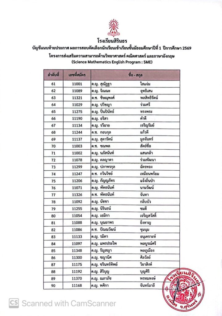 มาแล้ว! ประกาศผลการสอบคัดเลือกห้องเรียนพิเศษ SME ม.1