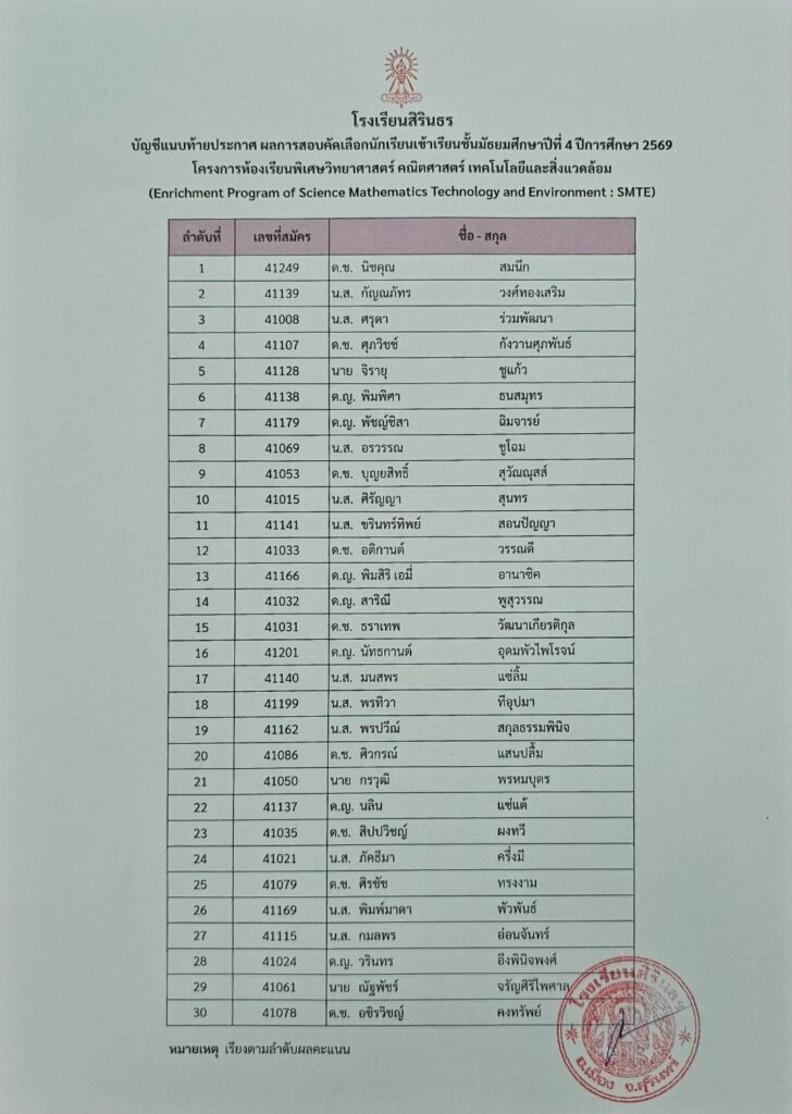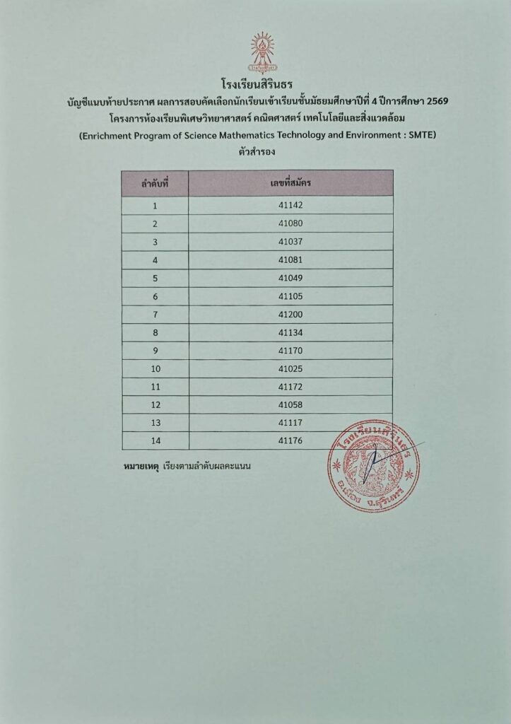 มาแล้ว ประกาศผลการสอบคัดเลือกห้องเรียนพิเศษ SMTE ม.4