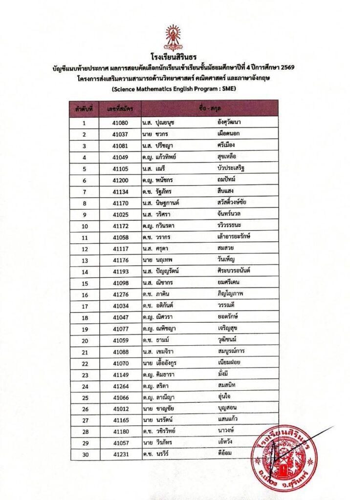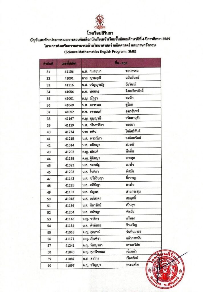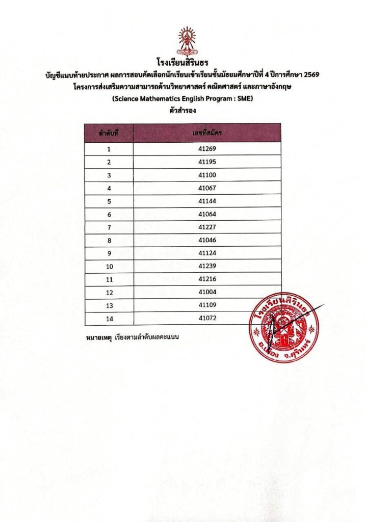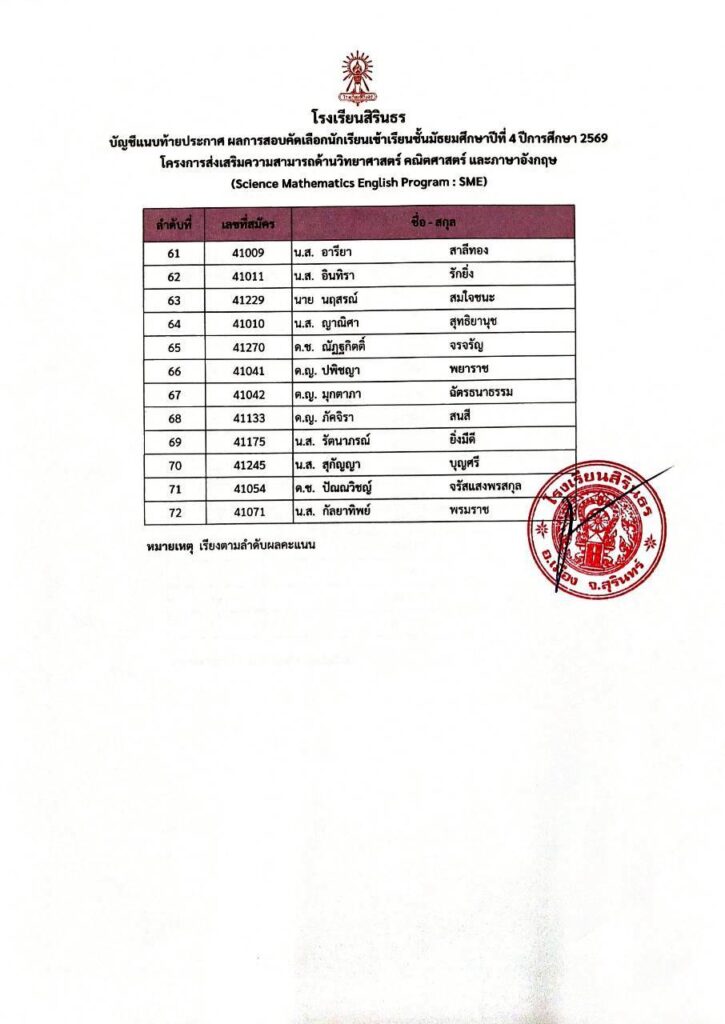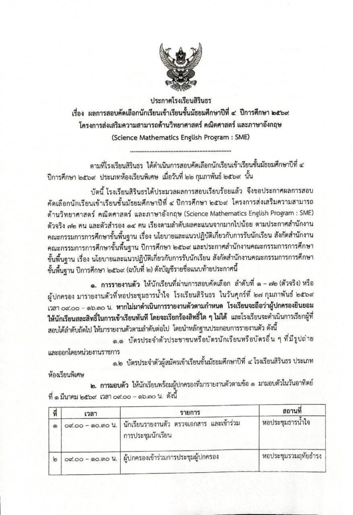 มาแล้ว ประกาศผลการสอบคัดเลือกห้องเรียนพิเศษ SME ม.4