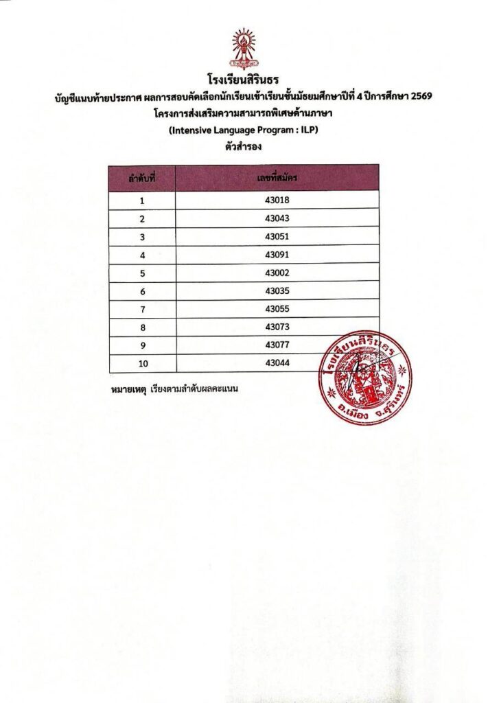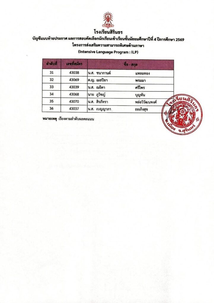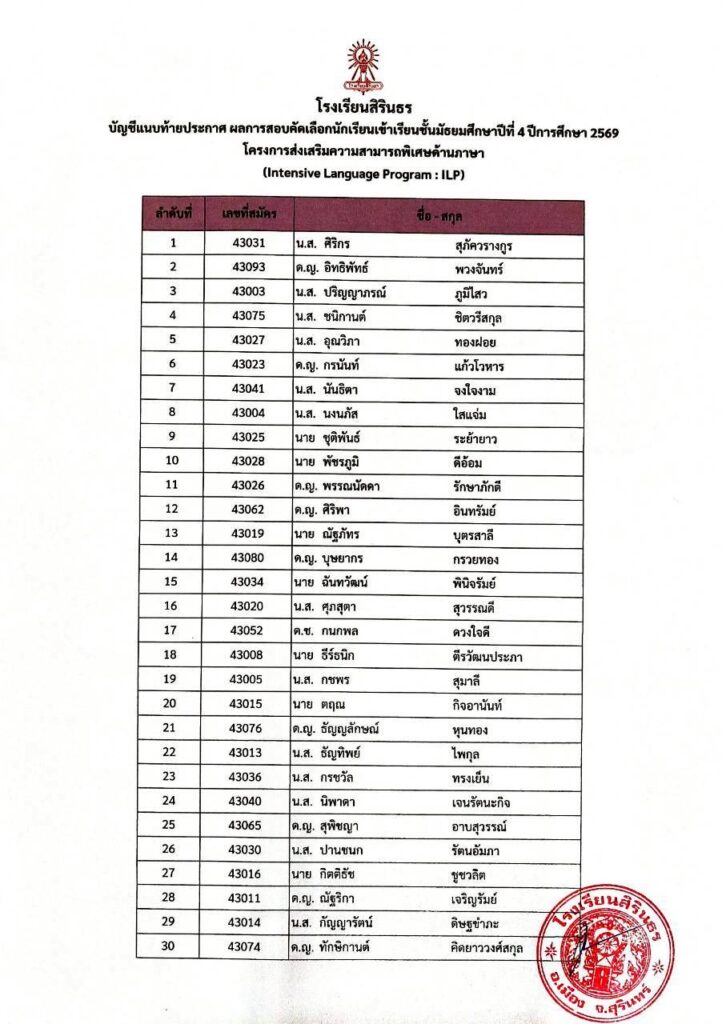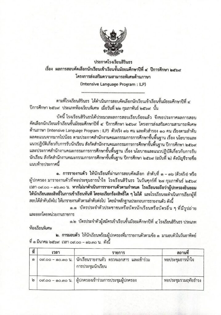 มาแล้ว ประกาศผลการสอบคัดเลือกห้องเรียนพิเศษ ILP ม.4