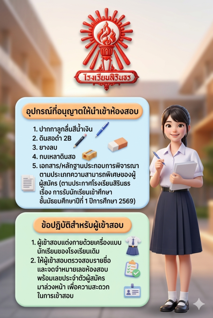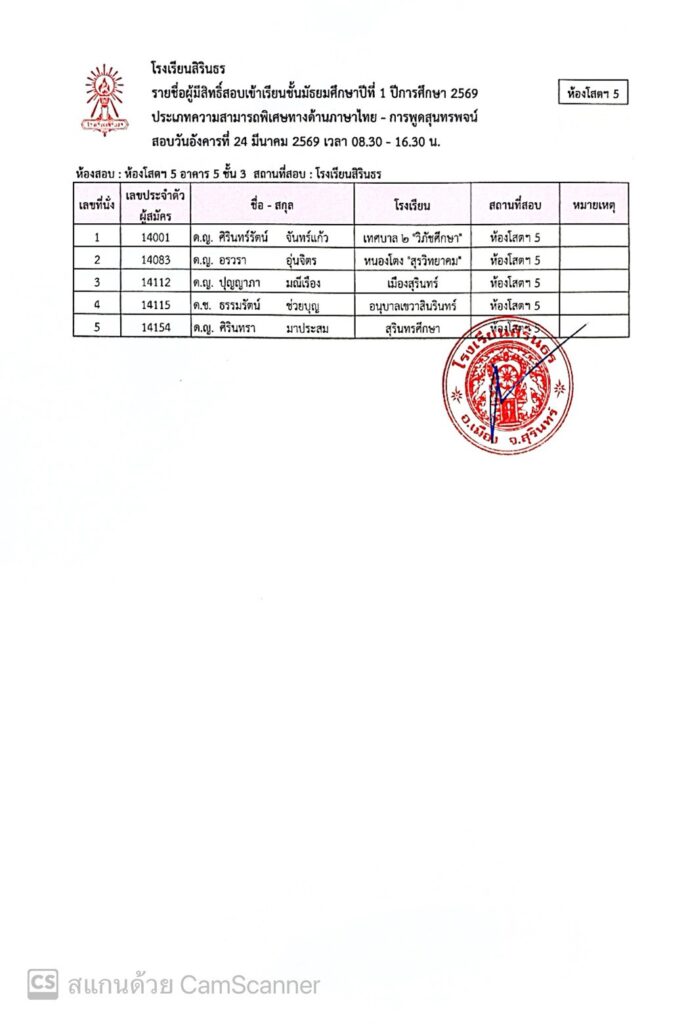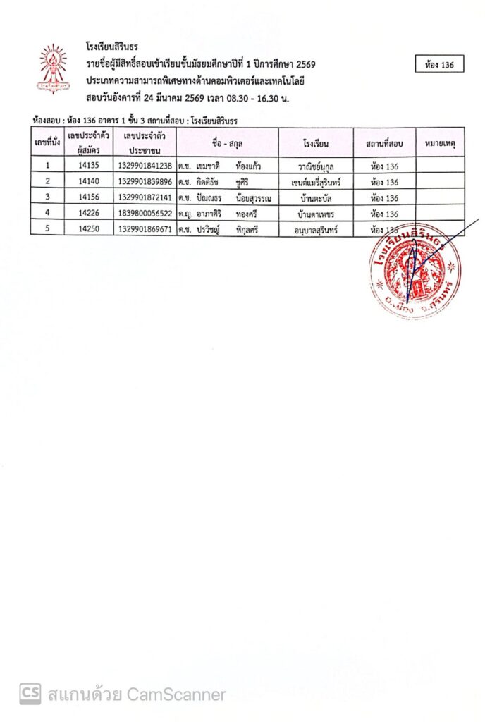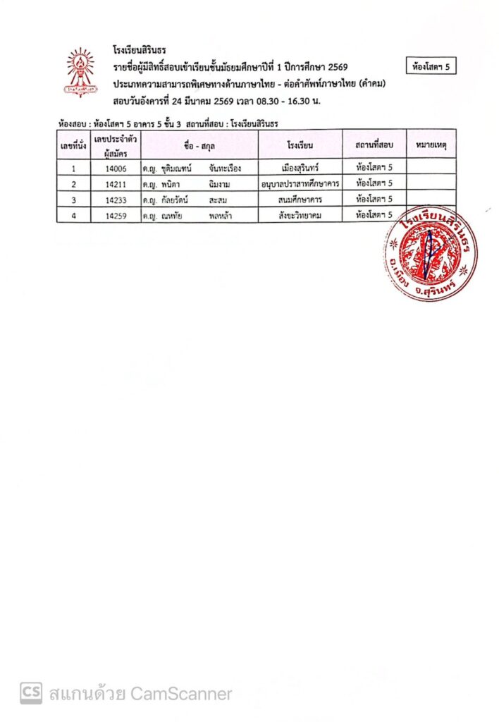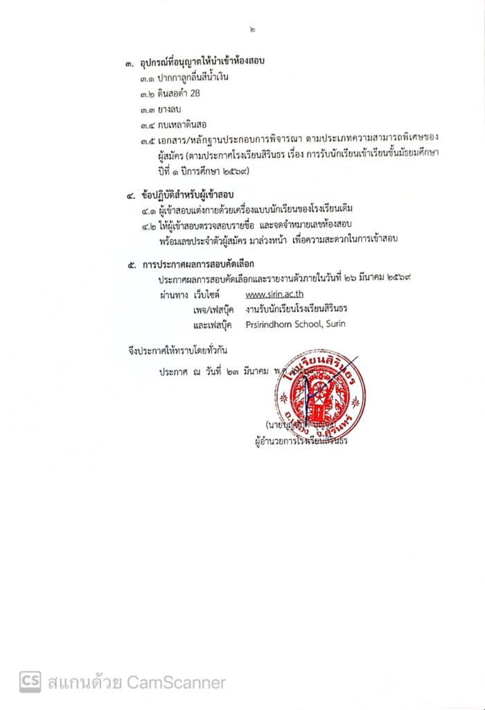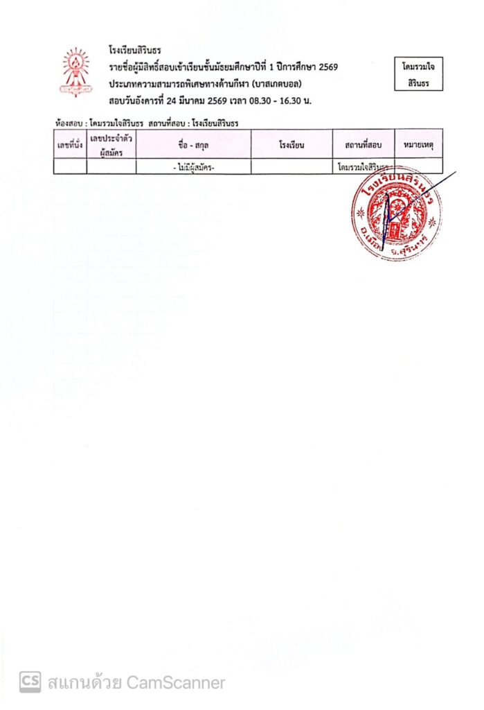 ประกาศรายชื่อผู้มีสิทธิ์สอบเข้าเรียนชั้นมัธยมศึกษาปีที่ 1 ปีการศึกษา 2569 ประเภทนักเรียนที่มีความสามารถพิเศษ