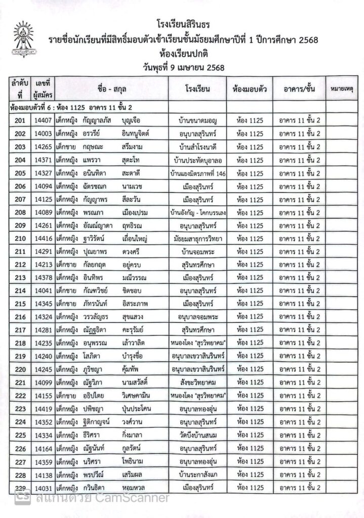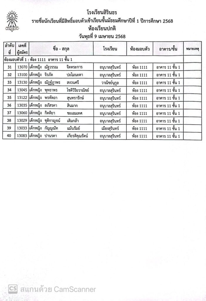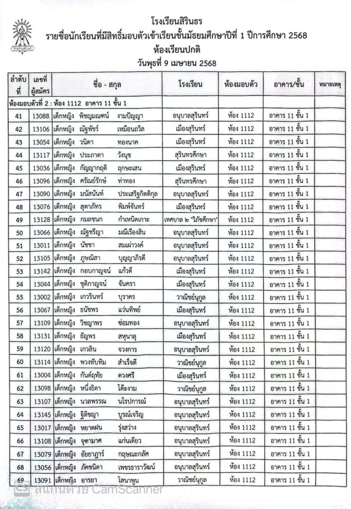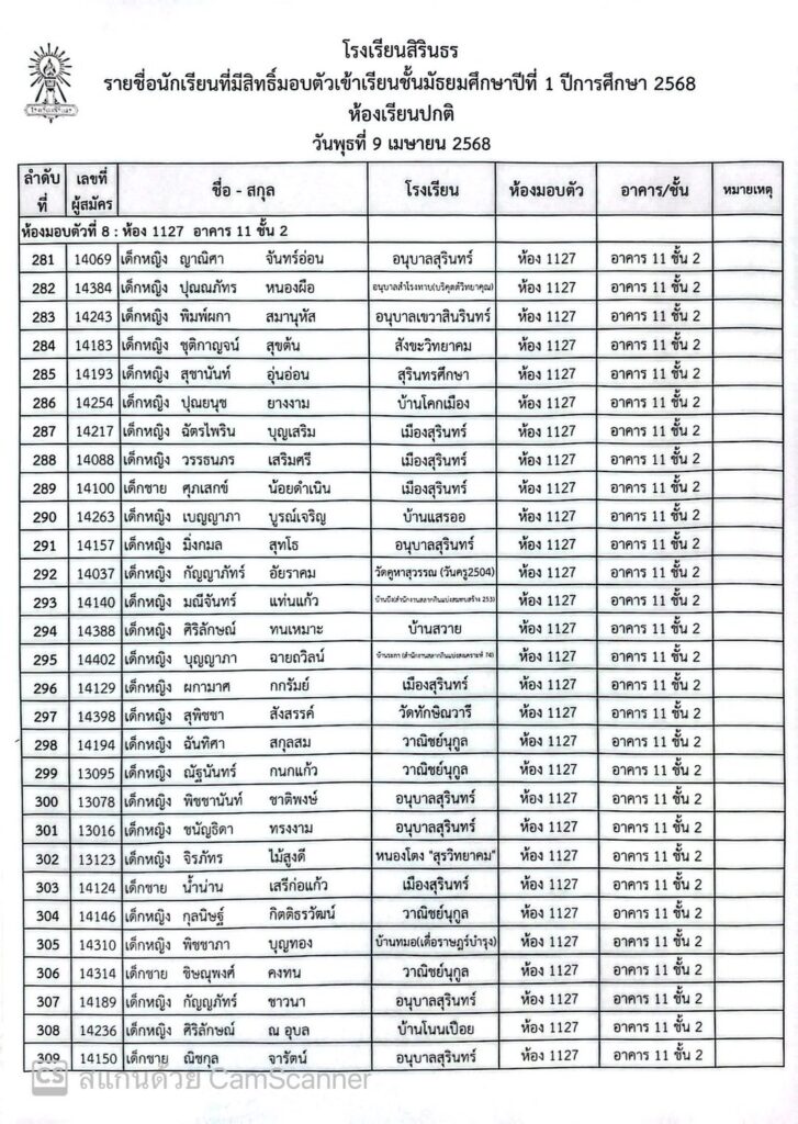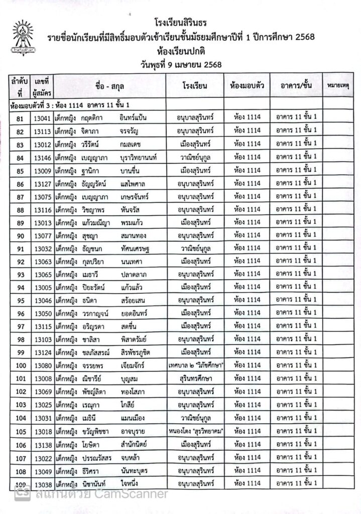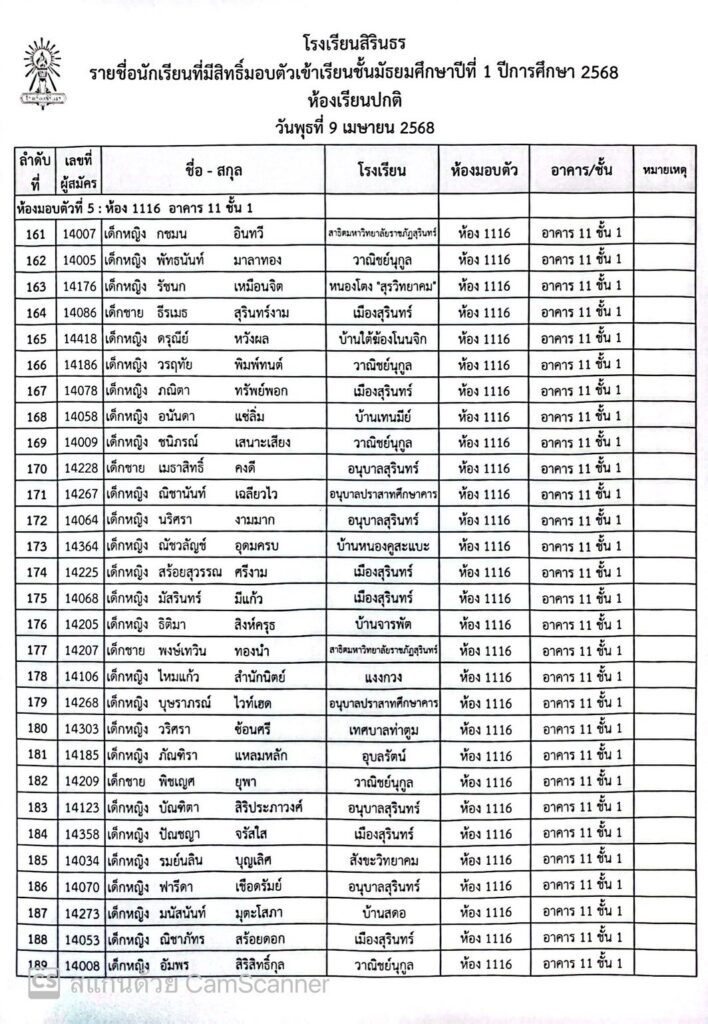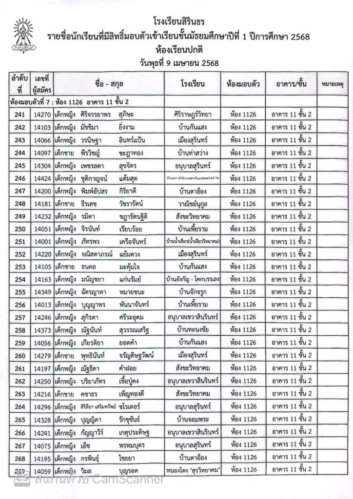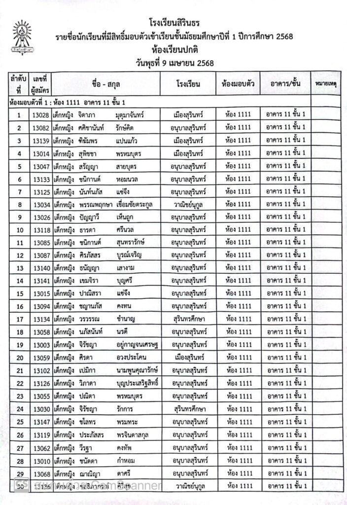 ประกาศรายชื่อและห้องมอบตัว ประเภทห้องเรียนปกติ ชั้นม.1 ปีการศึกษา 2568