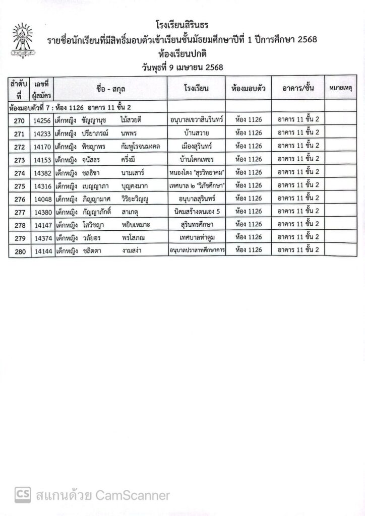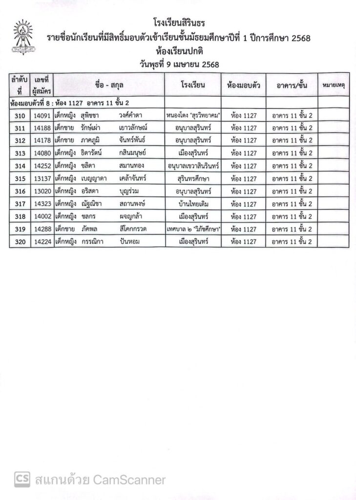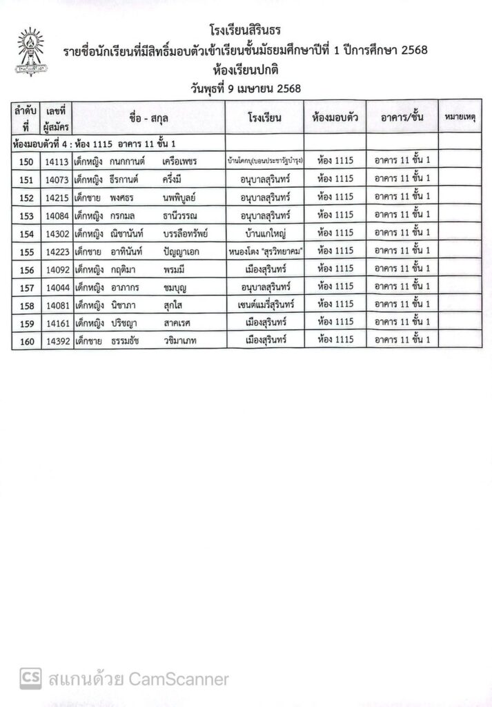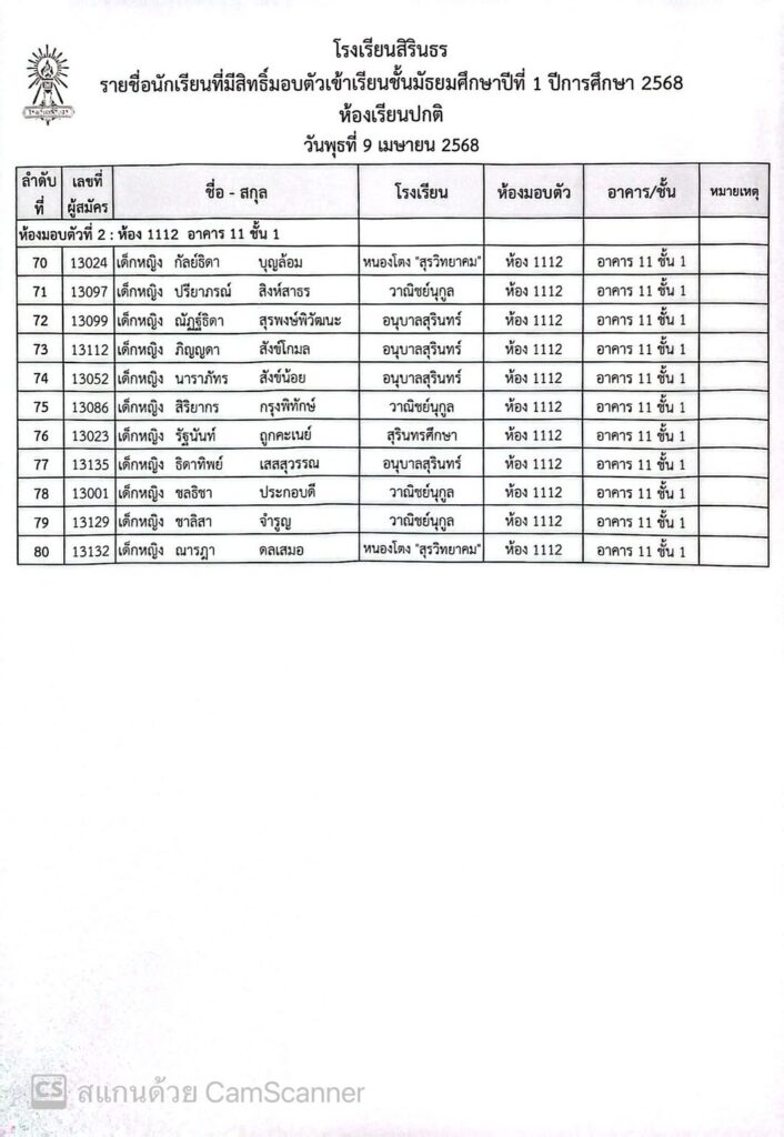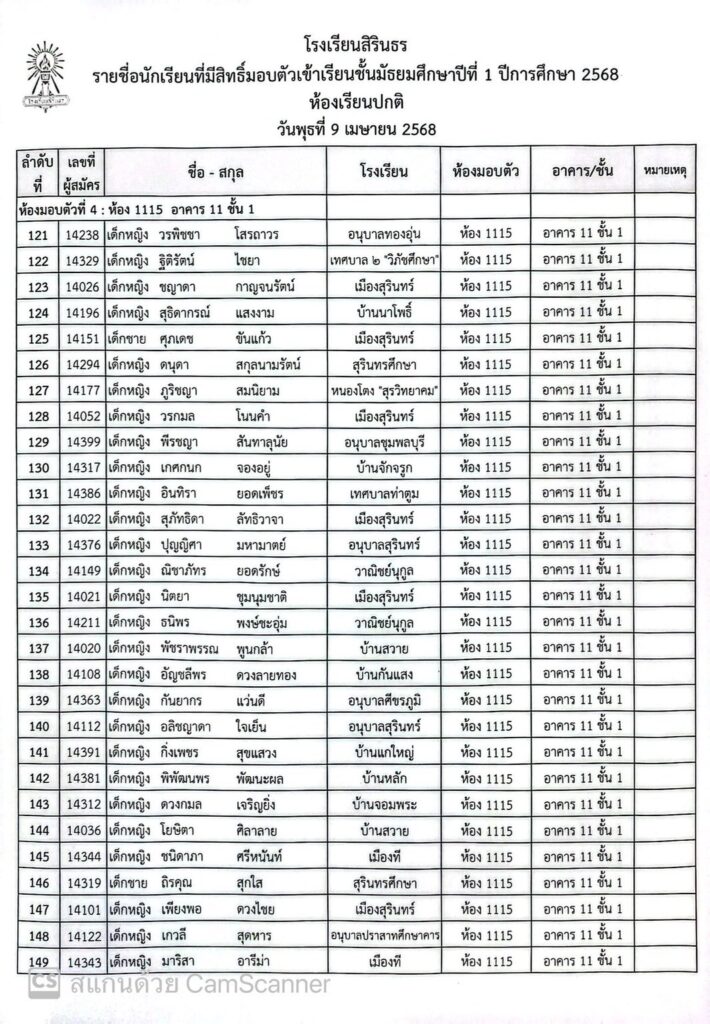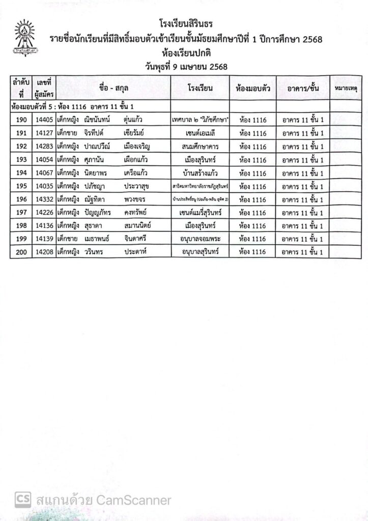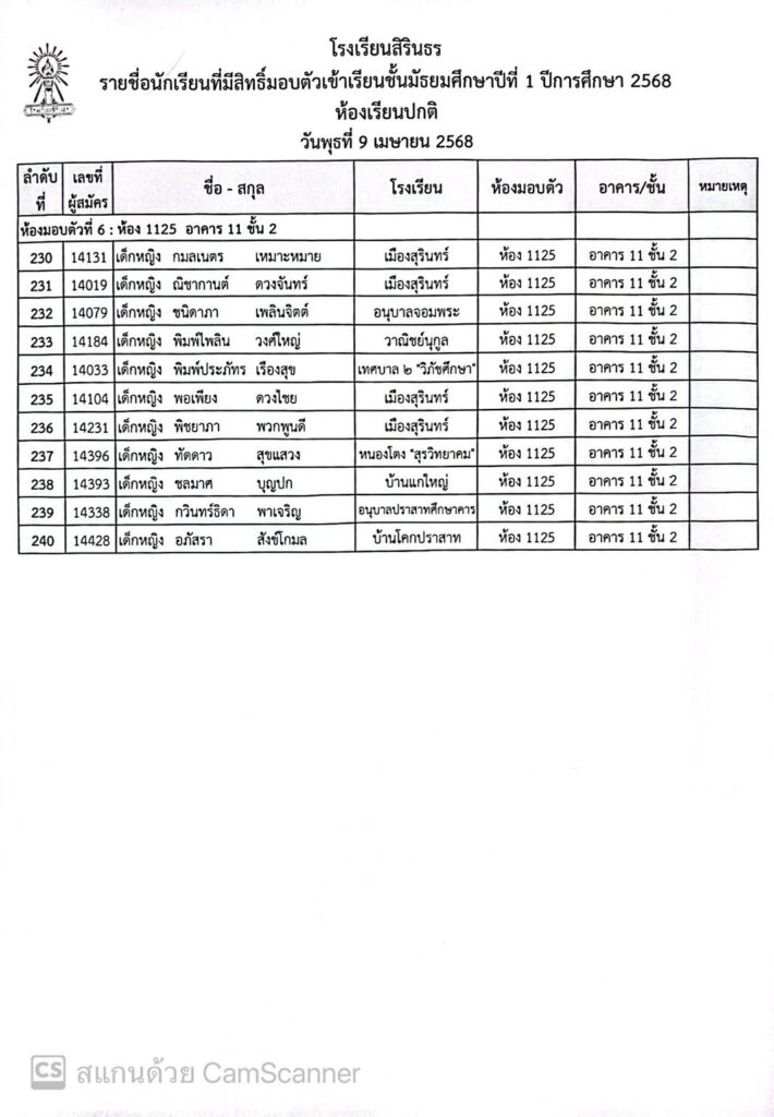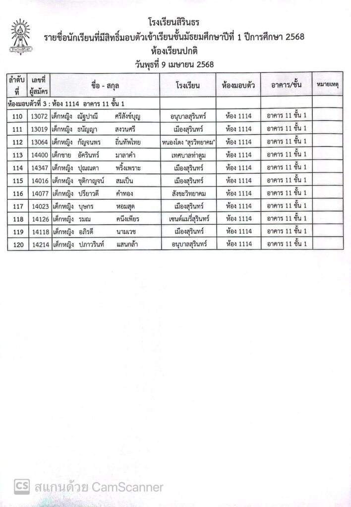 ประกาศรายชื่อและห้องมอบตัว ประเภทห้องเรียนปกติ ชั้นม.1 ปีการศึกษา 2568